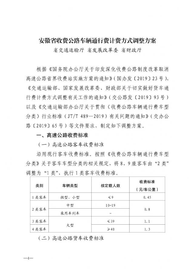 安徽省收費公路車輛通行費計費方式調(diào)整方案